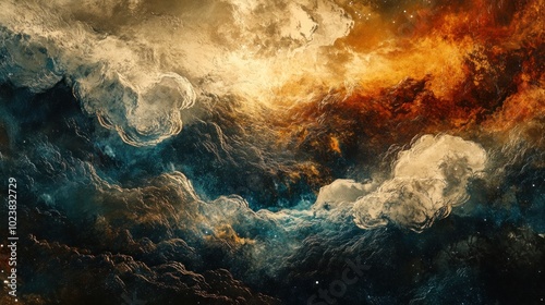 Abstract Cosmic Landscape with Swirling Clouds and Stars
