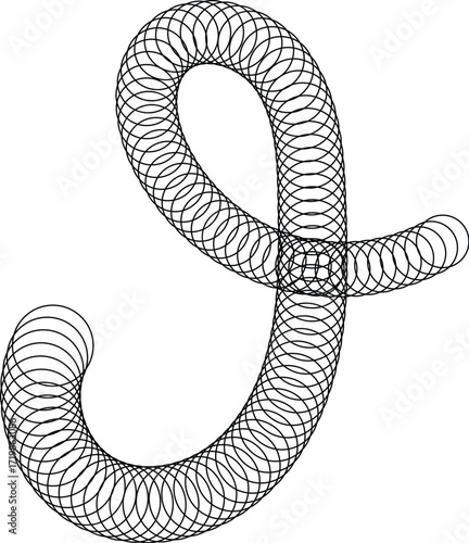 Abstract Curvy Shape Formed by Interlocking Circles in Black and White.