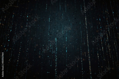 Abstract dark blue digital background with sparkling blue light particles and areas with deep depths Particles form into lines, surfaces and grids