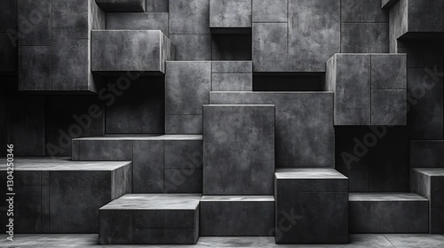 Abstract Dark Grey Cubes Geometric Wall Background. AI Generated