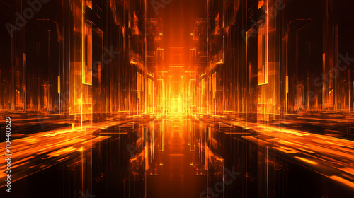 Abstract dark kaleidoskopic background with reflection in orange wallpaper, dark fantasy scifi backdrop cosmic and transcendental. Kaleidoscopic. Illustration
