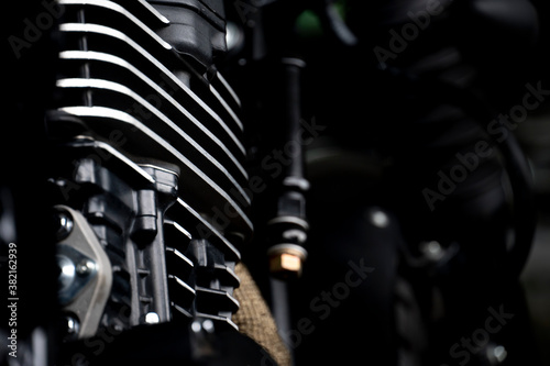 Abstract dark tone beside engine of big motorcycle.