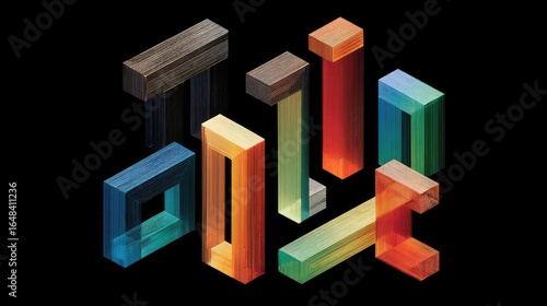 Abstract design, multicolored, 3D geometric shapes