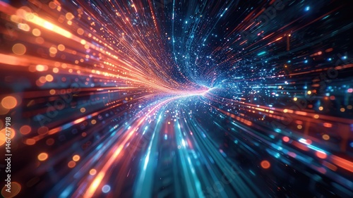 Abstract design of colorful light shine across graphic background. Visual effect particle glow with mixing of color reflect brightness to scenery perfect for energetic and creativity wallpaper. AIG53.