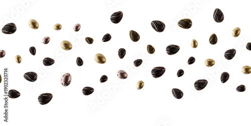 Abstract design of flowing metallic shapes in gold, bronze and black against a white backdrop. Ideal for modern design.