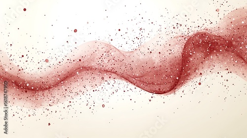 Abstract design with flowing, reddish-pink shapes and glittering specks.
