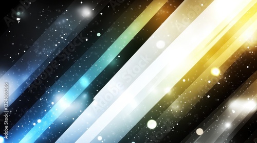 Abstract diagonal lines, glowing lights, and bokeh effect on dark background.