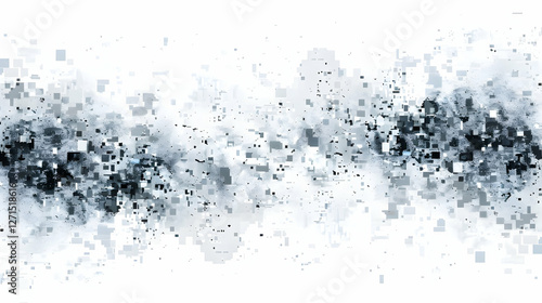 Abstract digital art featuring a blurred mosaic pattern in shades of black and gray