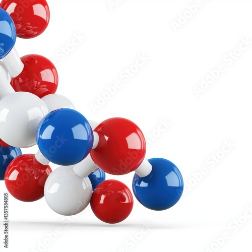 Abstract Digital Art of Nonpolar Molecule Structure with Red White and Blue Spheres and Ample Copy Space for Text Usage
