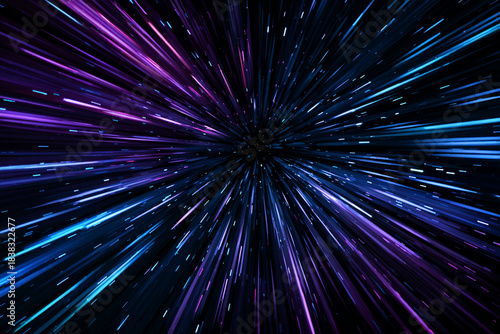 abstract digital art of speeding lines of purple and blue light against a dark background