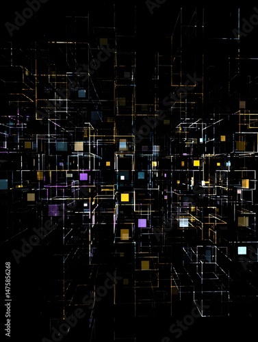 Abstract Digital Background of Colorful Geometric Shapes in Space