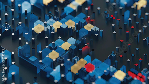 Abstract digital background of ordered dots on dark background. 3D rendering