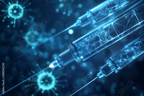Abstract digital background on a medical theme, featuring futuristic elements and symbols related to healthcare and medicine.