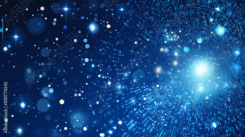 Abstract digital background with glowing particles and stars. Binary code. Futuristic for tech projects. High resolution.