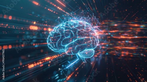 Abstract digital brain and circuits with futuristic technology neural network or artificial intelligence advanced learning system or intelligent industrial control