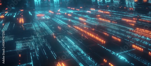 Abstract digital data stream with glowing lines and numbers in a futuristic cyberspace.