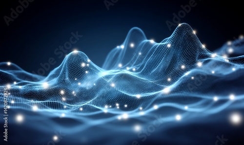 Abstract digital landscape of glowing particles