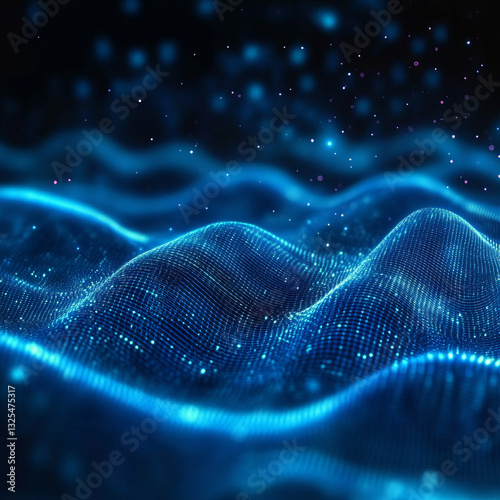Abstract Digital Landscape with Undulating Grid and Teal Highlights