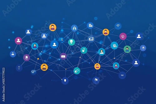 Abstract Digital Network Map Interconnected Profiles and Engagement