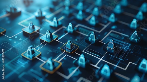 Abstract digital network with blue glowing nodes and lines representing connections and communication.