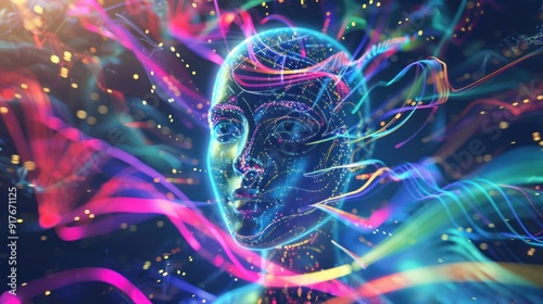 Abstract Digital Portrait with Neon Lights
