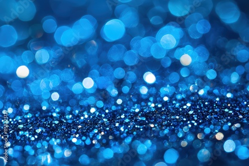 Abstract elegant flow of detailed blue glitter particles underwater, shimmering with holiday magic and de-focused lights in a luxurious setting..
