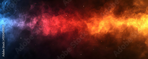 Abstract Fiery and Icy Background, Red, Orange, and Blue Smoke Swirl Dynamically on Dark Canvas