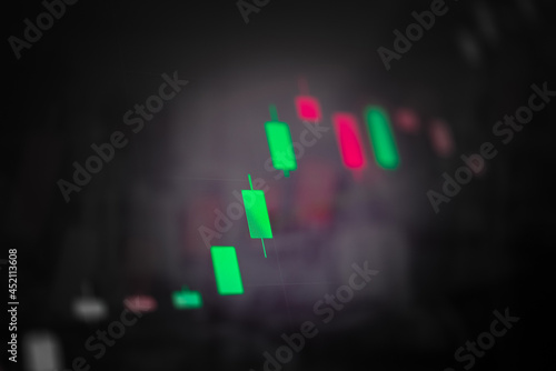 Abstract financial trading graphs and digital number of foreign exchange market trading on monitor. Background of gold and blue digital chart to represent stock market trend.