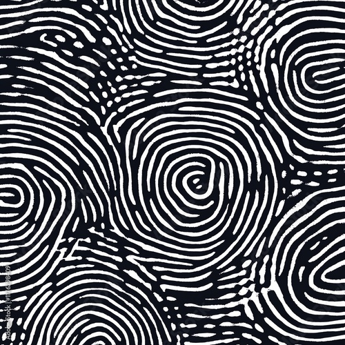 Abstract fingerprint patterns in monochromatic tones, unique identityfocused design