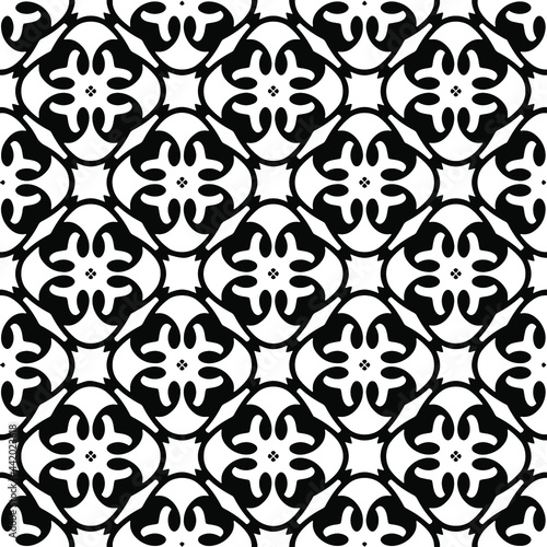 Abstract Flower Tiles. Seamless Vector Pattern Design. Black and white pattern.
