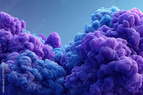 Abstract flowing blue and purple smoke cloud formations against a clear sky background