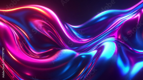 “Abstract fluid iridescent holographic neon curved wave in motion, rendered in 3D. Features a colorful gradient design, ideal for backgrounds, banners, wallpapers, posters, and covers.”