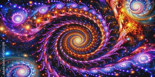 Abstract fractal pattern resembling swirling galaxies in outer space, fractal, abstract, pattern, design, texture, background