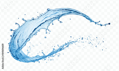 abstract fresh and clean water splash with drops in mid air cut out and curve style isolated on white background