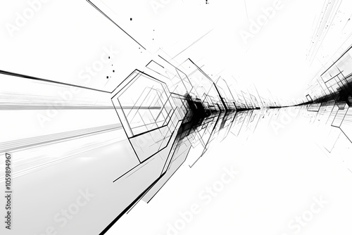 Abstract futuristic background featuring interconnected lines and hexagon shapes, creating a high-tech, digital look with depth and dimension.