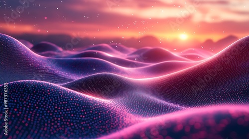 Abstract Futuristic Data Technology A Wave of Connecting Dots and Lines on a Dark Background