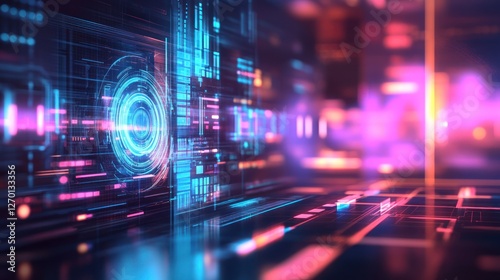 Abstract Futuristic Digital Interface Neon Lights Technology Background
