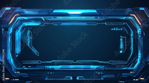 Abstract Futuristic Digital Tunnel with Glowing Blue Lines
