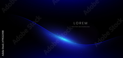 Abstract futuristic glowing neon blue lines on dark blue background with lighting effect.