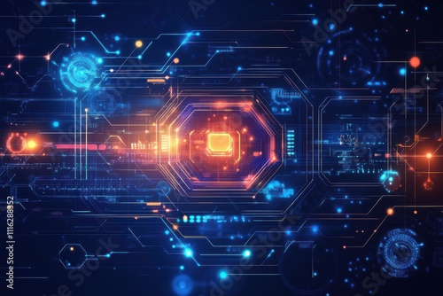 Abstract futuristic technology background with circles, stripes, and dots geometric shapes vector illustration, global network and connectivity concept, big data visualization in a dark background