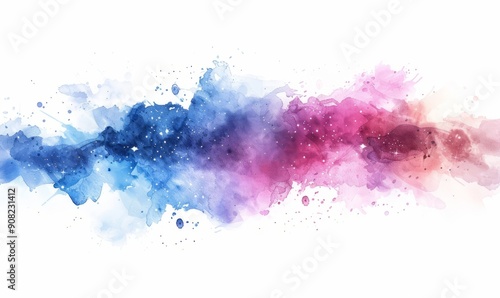 Abstract galaxy and stars in watercolor on white.