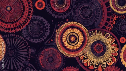Abstract Gear Mandala Design Red Orange And Purple Hues
