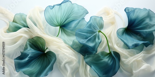 Abstract gentle natural transparent leaves, branches, flowers, with a cyber silverpoint impression. Great as wallpaper, background. Generative AI, AI