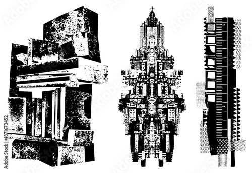 Abstract Geometric Architectural Forms in Halftone Vector Art