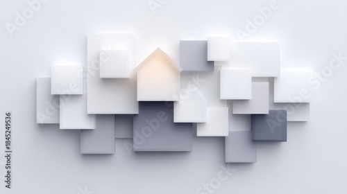 Abstract geometric background with white and gray squares dynamic design featuring interconnected white gray squares creating captivating abstract geometric pattern