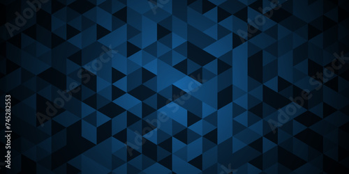 Abstract geometric black and blue background seamless mosaic and low polygon triangle texture wallpaper. Triangle shape retro wall grid pattern geometric ornament tile vector square element.