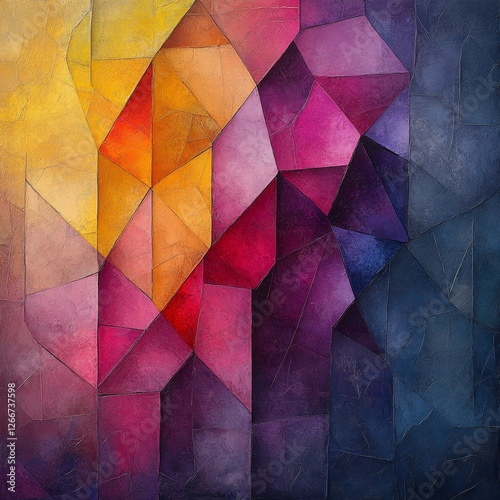 Abstract Geometric Colorful Background with Vivid Triangular Shapes in Gradient Shades of Yellow, Orange, Red, Purple, and Blue for Artistic Use