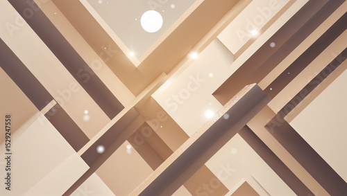 Abstract geometric composition with gradient effects and illuminated particles in a warm color palette