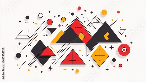 Abstract geometric composition with vibrant triangles squares circles creating a modern decorative minimalist backdrop banner vector