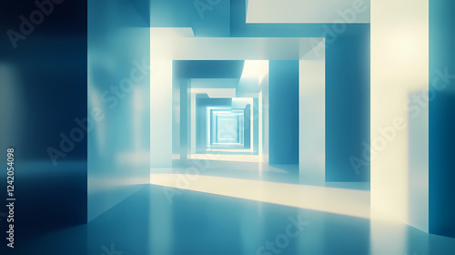 Abstract geometric design in blue tones with overlapping squares, creating a sense of depth on a light background. Perspective Depth Techniques. Illustration